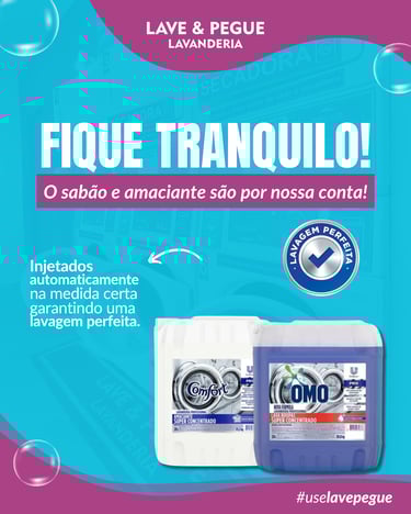 Acumule e Ganhe: A cada 10 selos acumulados em nosso cartão fidelidade, você ganha 1 ciclo grátis (lavagem ou secagem). É dinheiro de volta para o seu bolso!