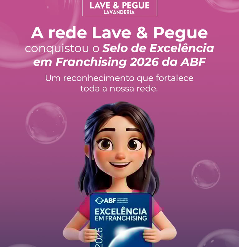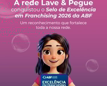 A Lave Pegue Varjota tem o orgulho de fazer parte de uma rede nacional com mais de 300 unidades de sucesso espalhadas pelo Brasil. Nossa operação é validada pelo prestigiado Selo de Excelência da ABF (Associação Brasileira de Franchising), o que garante a você uma gestão superior, certificada e focada na excelência.